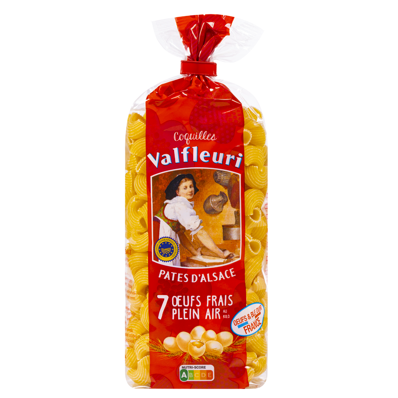 Les Coquilles Valfleuri ont l’excellente saveur de leurs 7 œufs frais et tout l’arsenal pour retenir les sauces. Des rainures en surface pour accrocher les sauces généreuses, comme les bolognaises et deux grandes ouvertures pour accueillir les sauces raffinées, à base de crème fraiche ou de bouillon. De quoi épater vos convives !